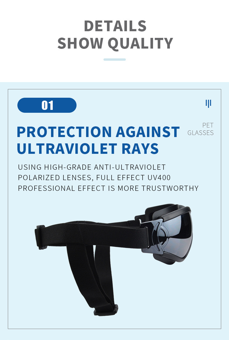 Quality is a defining characteristic of the Windproof Sand-proof UV Pet Glasses, underscored by the meticulous craftsmanship and premium materials used in their production. Constructed from high-grade plastic, these goggles are not only lightweight but also robust enough to withstand typical wear and tear. The lenses are designed to provide clear visibility while effectively blocking harmful UV rays, ensuring that your dog’s eyes remain protected even on the sunniest days. Additionally, the quality assurance standards adhered to during manufacturing guarantee that each pair meets reliable performance benchmarks. This focus on quality translates into durable products that can endure the rigors of outdoor activities, enabling pet owners to trust in the longevity and reliability of these goggles over time.