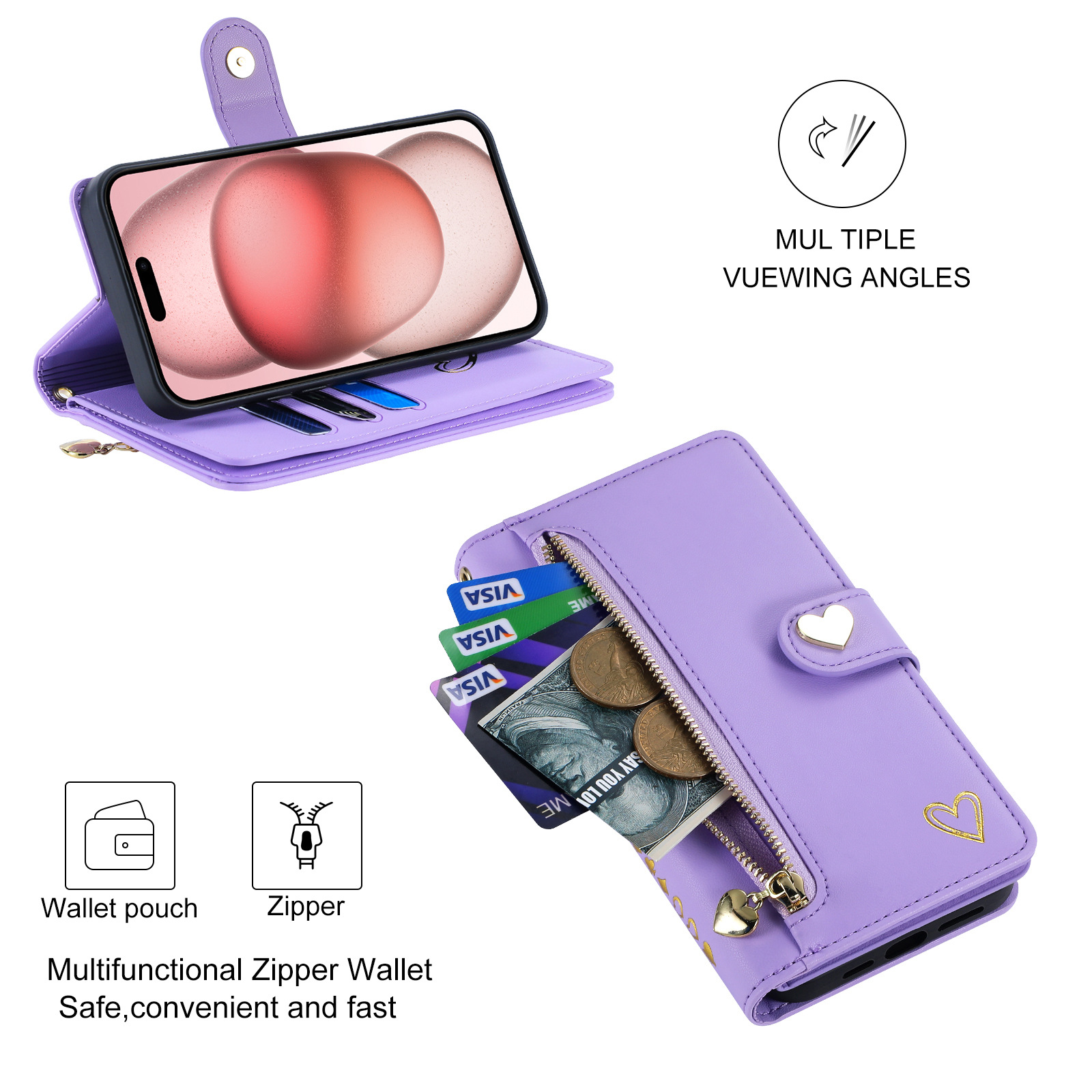 One of the standout advantages of the Women’s Gilded Heart Multi-Card Zipper Phone Case is its unique combination of style and functionality. Made from simulated leather, this case offers a chic aesthetic while providing essential protection for your device. The product features a magnetic closure, which adds an extra layer of security, ensuring that your cards and phone are safe from accidental drops or spills.